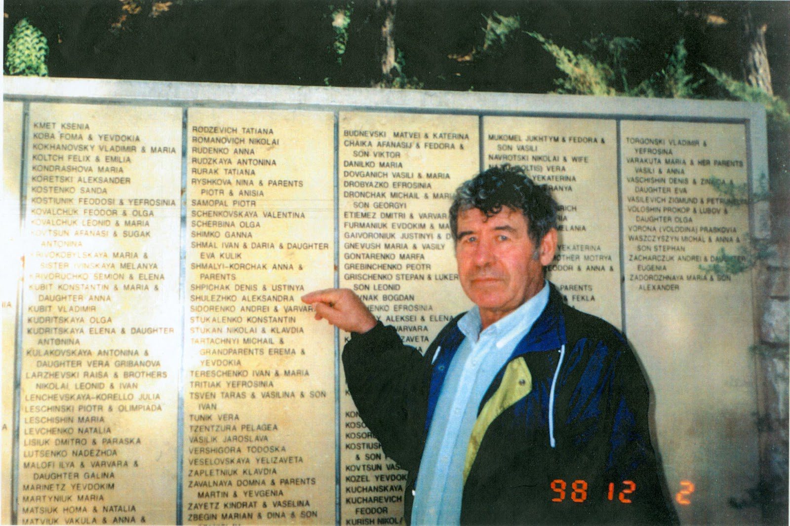 Бывший воспитанник приюта Владимир Пинкусович у имени А. М. Шулежко на Стене Праведников народов мира в Иерусалиме. 1998 р.